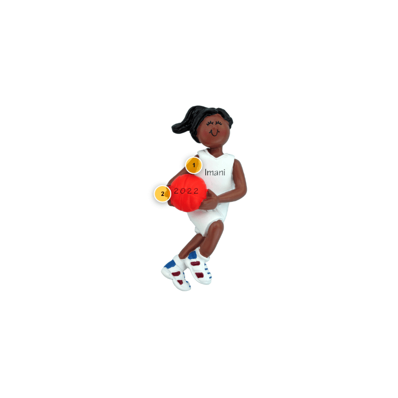 African American Female Basketball Player Ornament is the perfect way to net some points this holiday season. We include personalized text for no extra charge, so don't pass on this special memento today! Comes complete with hanging ribbon.