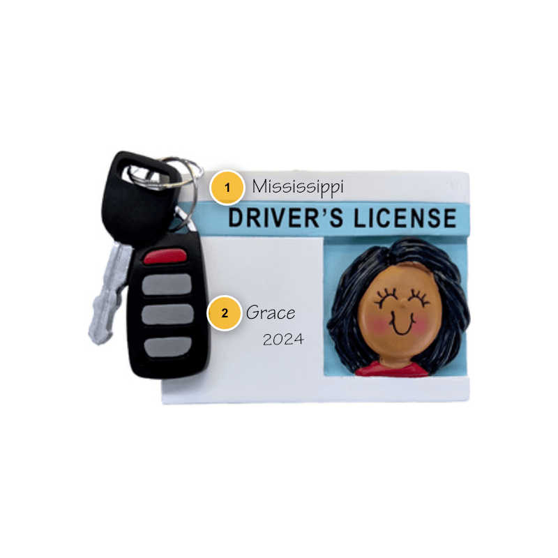 African American Female with License Personalized Ornament is the perfect way to show your support and excitement for your child's new milestone. It's also a great gift for other newly licensed drivers, or for anyone who loves cars and driving! Comes complete with hanging ribbon.