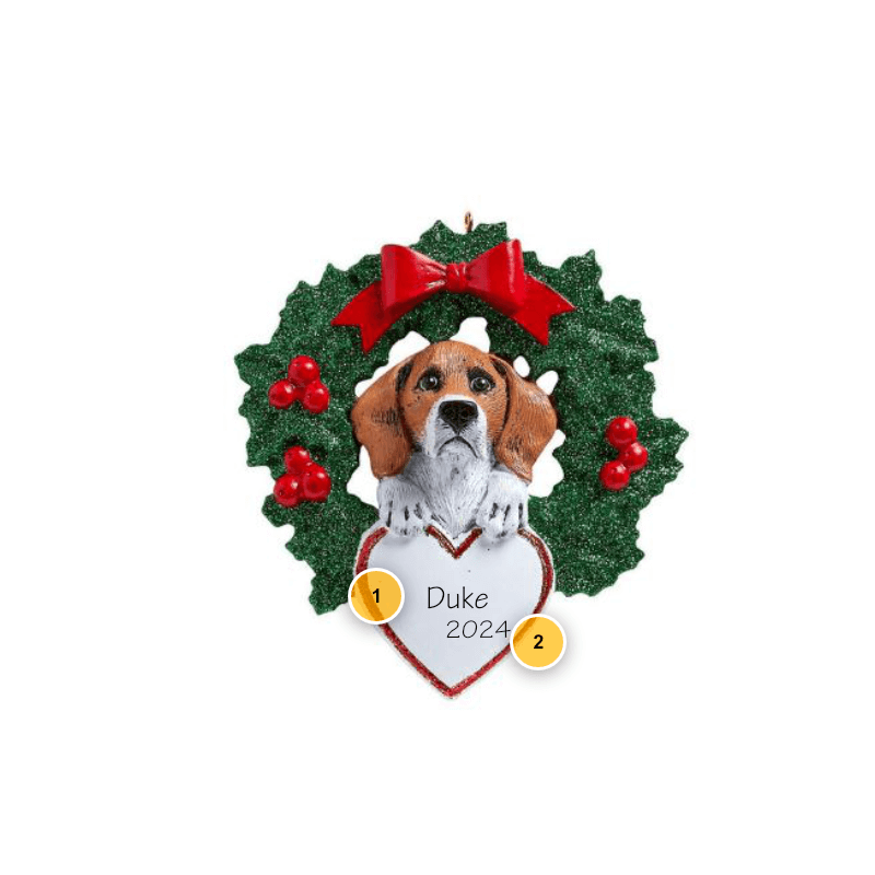 Barking loud for all to hear is the best way to spread Christmas cheer! Customize this adorable beagle ornament with your dog's name, or get one as a gift. Our personalized text is included for no extra charge, so don't miss out on this great deal! Comes complete with a hanging ribbon.