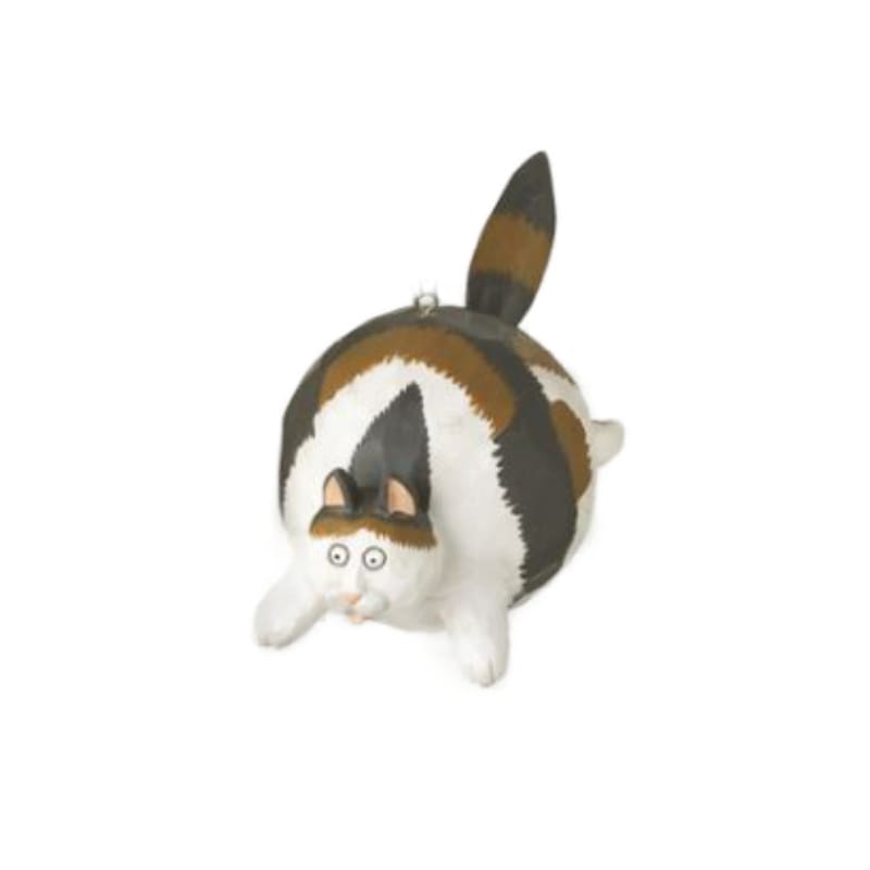 This plump and cuddly Calico cat ornament is the epitome of Christmas fun! A purr-fectly plump pal! This chubby cat ornament is sure to bring a smile to your face this holiday season. A cozy and comforting addition to your holiday décor!