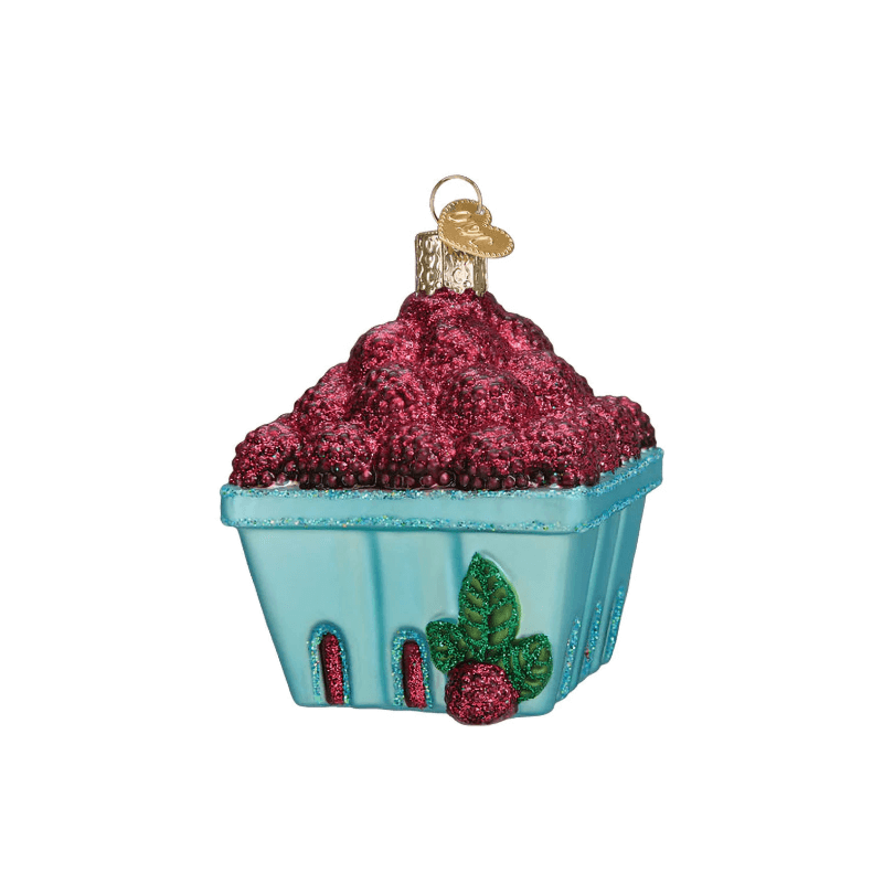 Carton of Raspberries Glass Ornament is a berry festive ornament this Christmas season! This ornament makes for a berry merry Christmas! Makes a great gift this holiday season! Comes complete with ribbon.