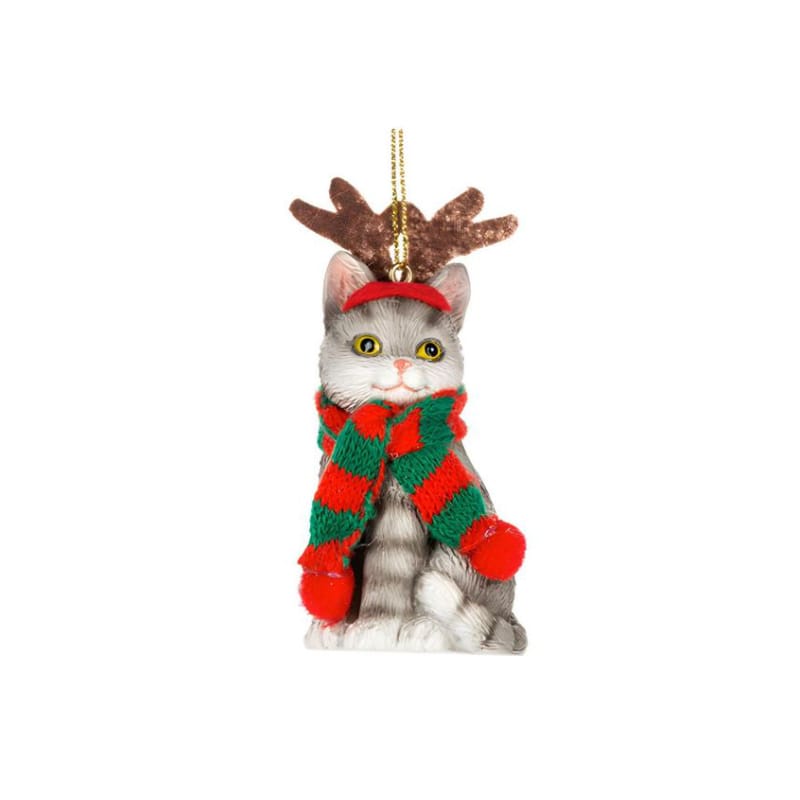 A paw-sitively delightful ornament! This whimsical design features a cat dressed as a reindeer, complete with antlers. A purr-fectly unique addition to your holiday décor.