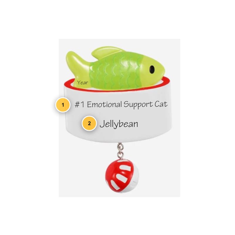 Cat Bowl Personalized Ornament is the purr-fect present for the naughty or nice feline in your life. Personalize at no extra cost to make a great gift or treasured keepsake! Ornament comes complete with hanging ribbon.