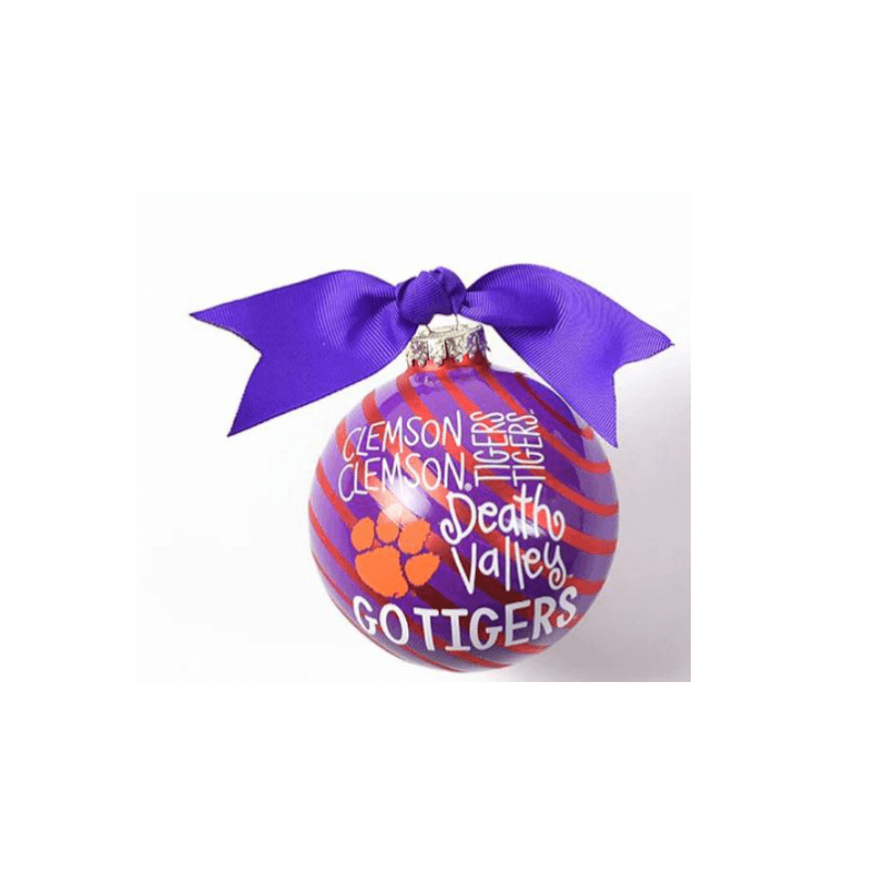 Clemson University Ball with Diagonal Stripe Ornament is a great way to show your Tigers pride. Featuring the iconic orange and purple colors and the Clemson logo, this collectible piece is a must-have for any fan. Hang it on your Christmas tree or display it year-round to add a touch of school spirit to your home.