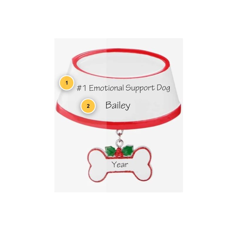 Dog Bowl Personalized Ornament is a great way to decorate for the howl-idays. A great gift for the good boy or girl in your life! Personalize at no extra cost to make a great gift or treasured keepsake! Ornament comes complete with hanging ribbon.