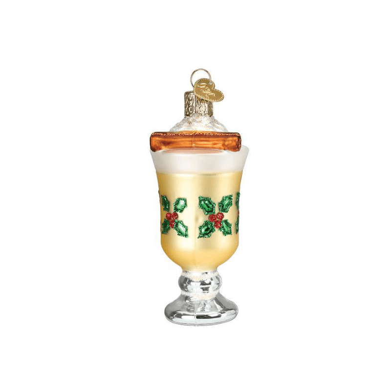 Eggnog Glass Ornament is a fun way to savor the season this Christmas! Featuring a frothy glass of eggnog topped with a sprinkle of nutmeg, this intricate piece is a must-have for holiday collectors! The prefect way to bring holiday cheer! Comes complete with a red hanging ribbon.