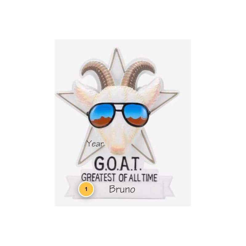 G.O.A.T Personalized Ornament is the greatest ornament to give this Christmas! Celebrate the greatest of all time with this personalized ornament. Perfect for athletes, musicians, or anyone who admires greatness. Customize it with a name to create a unique and inspiring keepsake.