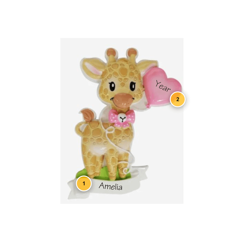 Giraffe (Pink) Personalized Ornament is an adorable way to celebrate a special baby girl this Christmas! We include personalized text for no extra charge, so don't hesitate to order this cute memento today! Great for baby's 1st Christmas, baby showers, or as a special keepsake! Ornament comes complete with hanging ribbon.