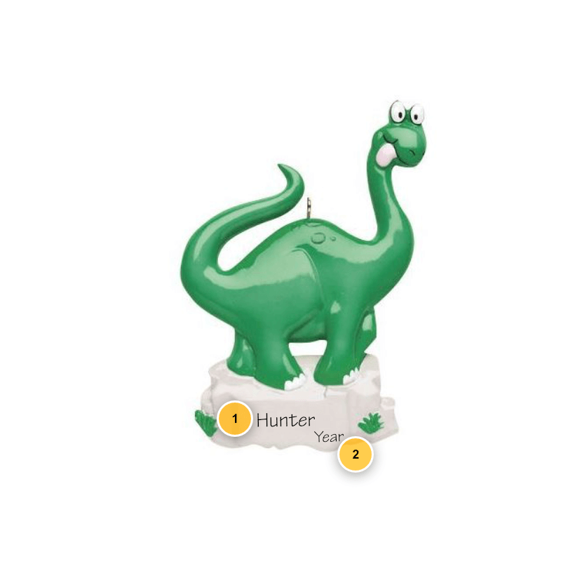 Green Long Necked Dinosaur Personalized Ornament makes a great gift for any dinosaur lover, young or old. This dino-mite ornament is sure to spark joy and imagination, making every holiday season truly unforgettable. Personalize at no extra cost to make a great gift or treasured keepsake! Ornament comes with hanging ribbon.