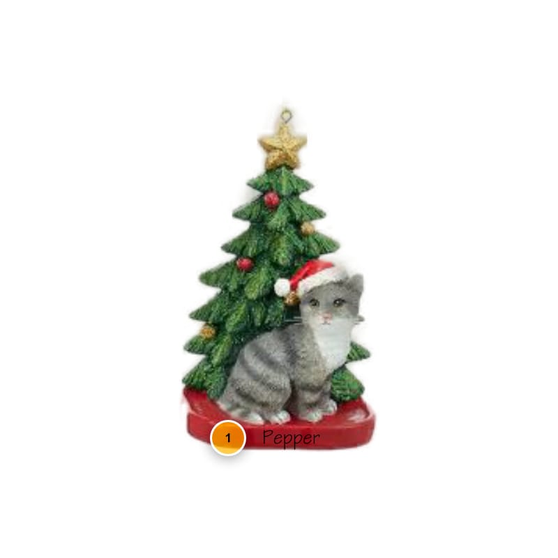 Time spent with a cat is never wasted! Grey Cat with Christmas Tree Personalized Ornament is the purr-fect way to honor the feline in your life. Personalize at no extra cost to make a great gift or treasured keepsake! Ornament comes complete with hanging ribbon.