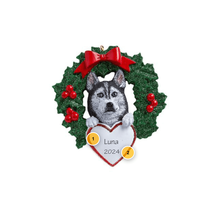 Husky Wreath Personalized Dog Ornament