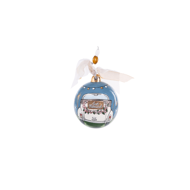 Just Married Sparklers Ball Ornament is a wonderful way to celebrate happily ever after this Christmas! Makes a perfect keepsake or gift for newlyweds. Give them something to remember this special time with a personalized ornament! Comes with coordinating ribbon.