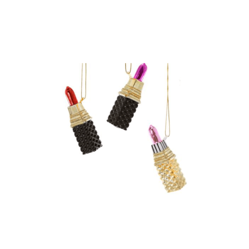 Lipstick Glass Ornament is the perfect way to add a touch of fabulous to your tree this Christmas season! Whether you're a makeup enthusiast or simply appreciate a touch of luxury, this lipstick ornament is a perfect way to add a touch of glamour to your Christmas tree. A charming way to celebrate a loved one this holiday season. Available in 3 styles. Ornament comes complete with hanging ribbon.