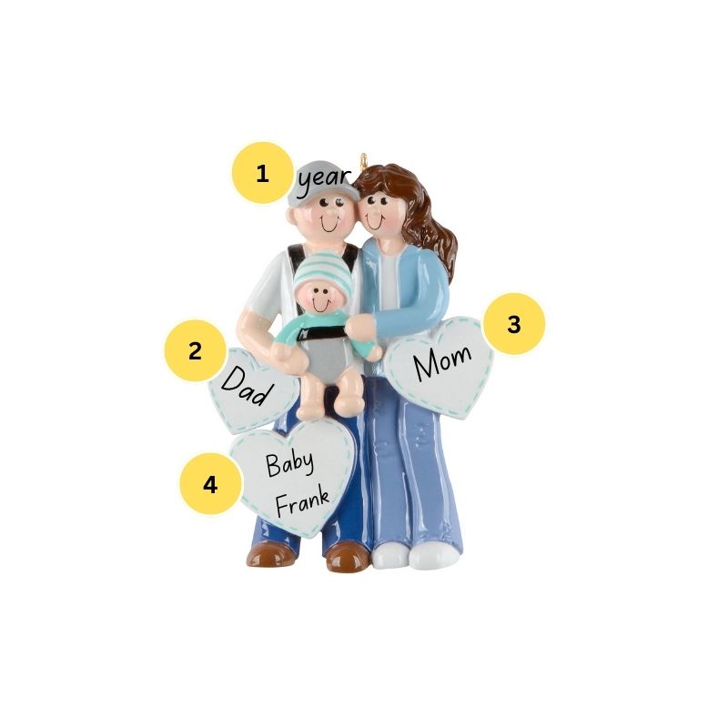 Crafted with care, each ornament can be customized with names, dates, or a special message, creating a truly unique touch. Whether it’s to commemorate baby’s first Christmas or to give as a thoughtful Christmas gift for new parents, this ornament is a heartfelt symbol of love, family, and new beginnings.