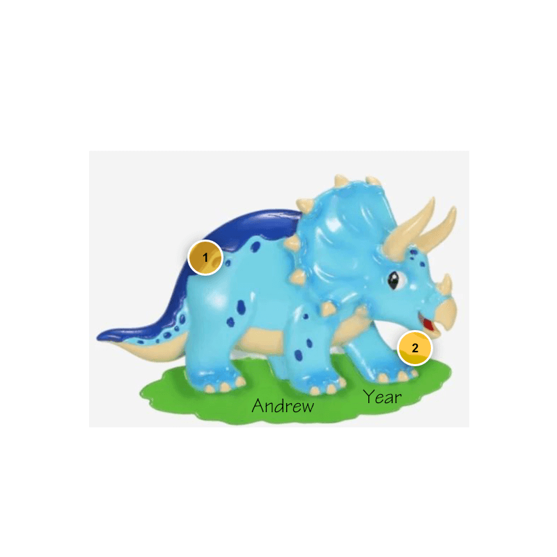 Triceratops Personalized Ornament makes a great gift for any dinosaur lover, young or old. This dino-mite ornament is sure to spark joy and imagination, making every holiday season truly unforgettable. Personalize at no extra cost to make a great gift or treasured keepsake! Ornament comes with hanging ribbon.